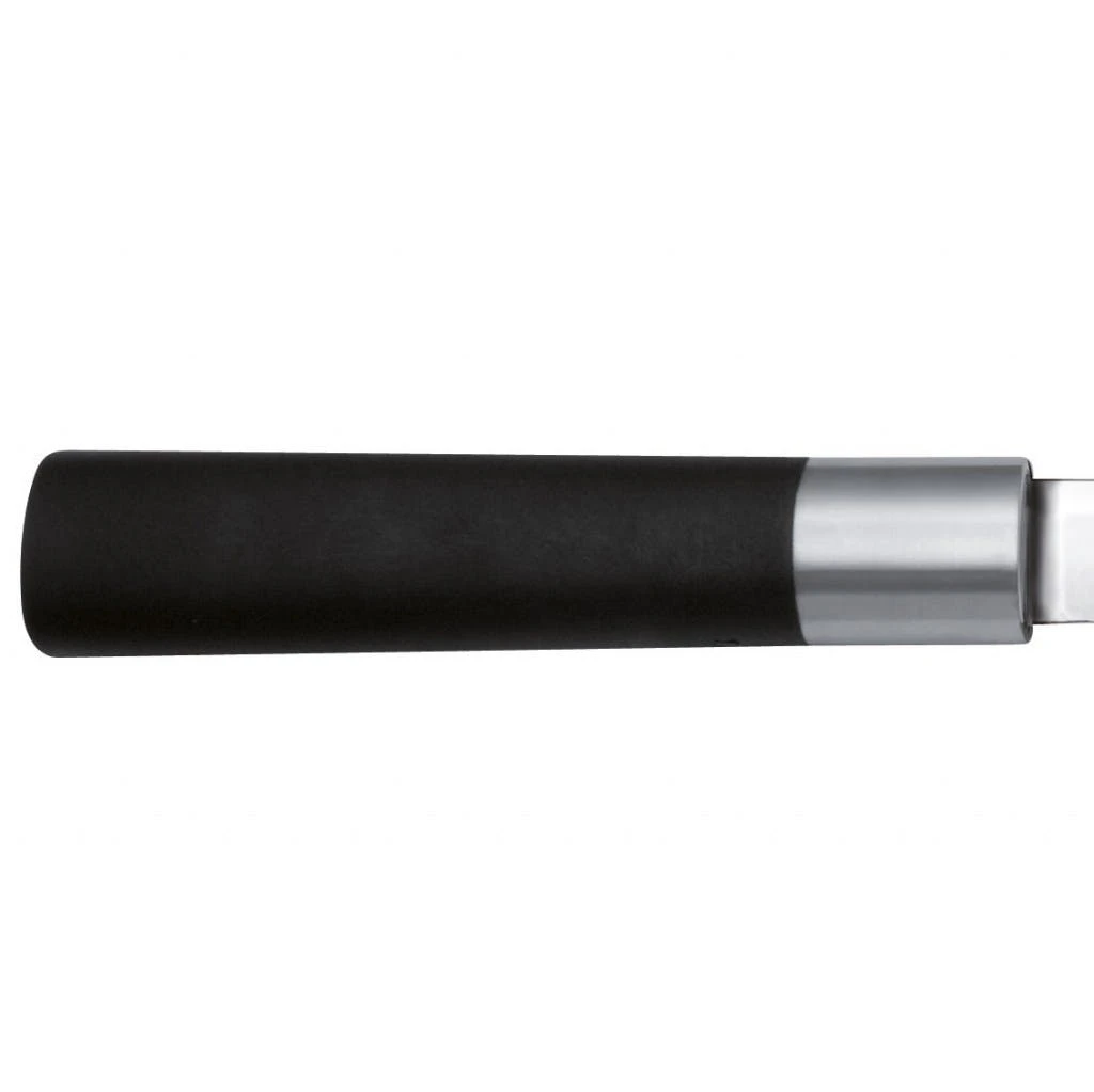 KAI Wasabi Black – polierte Klinge, schwarzer Griff: Die in Japan entwickelten Messer, mit einer rostfreien polierten Edelstahl-Klinge mit 58±1 HRC Härte, geben Ihrer Küche ein unverwechselbares, fernöstliches Flair. Für die Wasabi-Reihe wurde ein Griff entwickelt, dessen besondere Kombination aus Bambuspuder und Polyphropylen optimale Hygiene bietet – auch durch die natürlich antibakterielle Wirkung der Bambusanteile. Der schwarze Griff ist im Gegensatz zum traditionellen japanischen Holzgriff nicht gesteckt, sondern umschließt die Klinge komplett, so dass die Klinge fest mit dem Heft verbunden ist und sich zum anderen kein Schmutz einlagert – Großküchentauglichkeit garantiert.