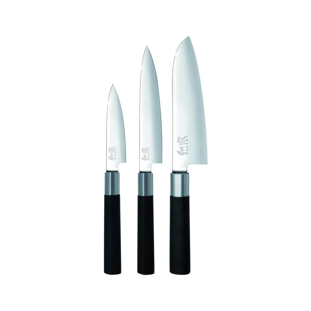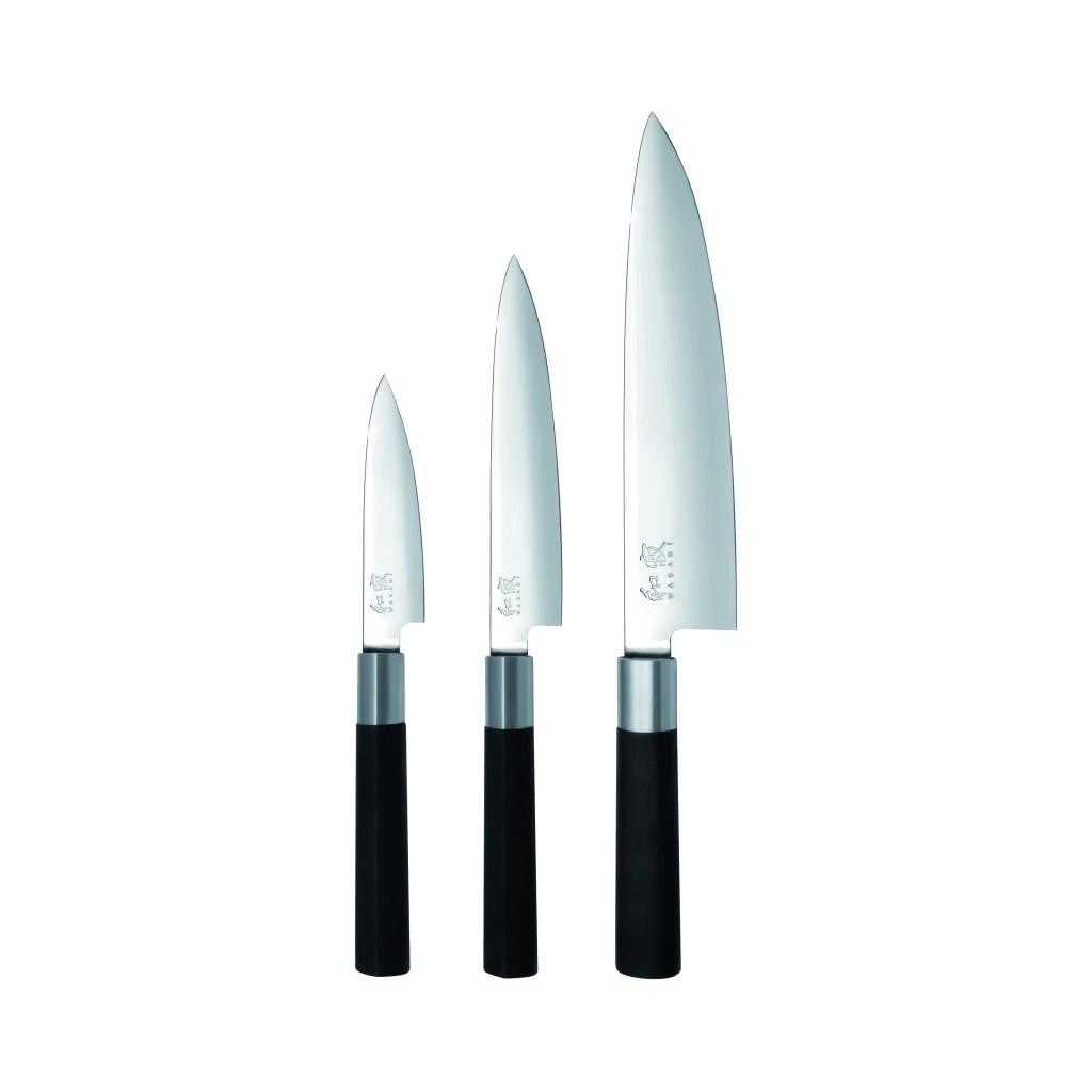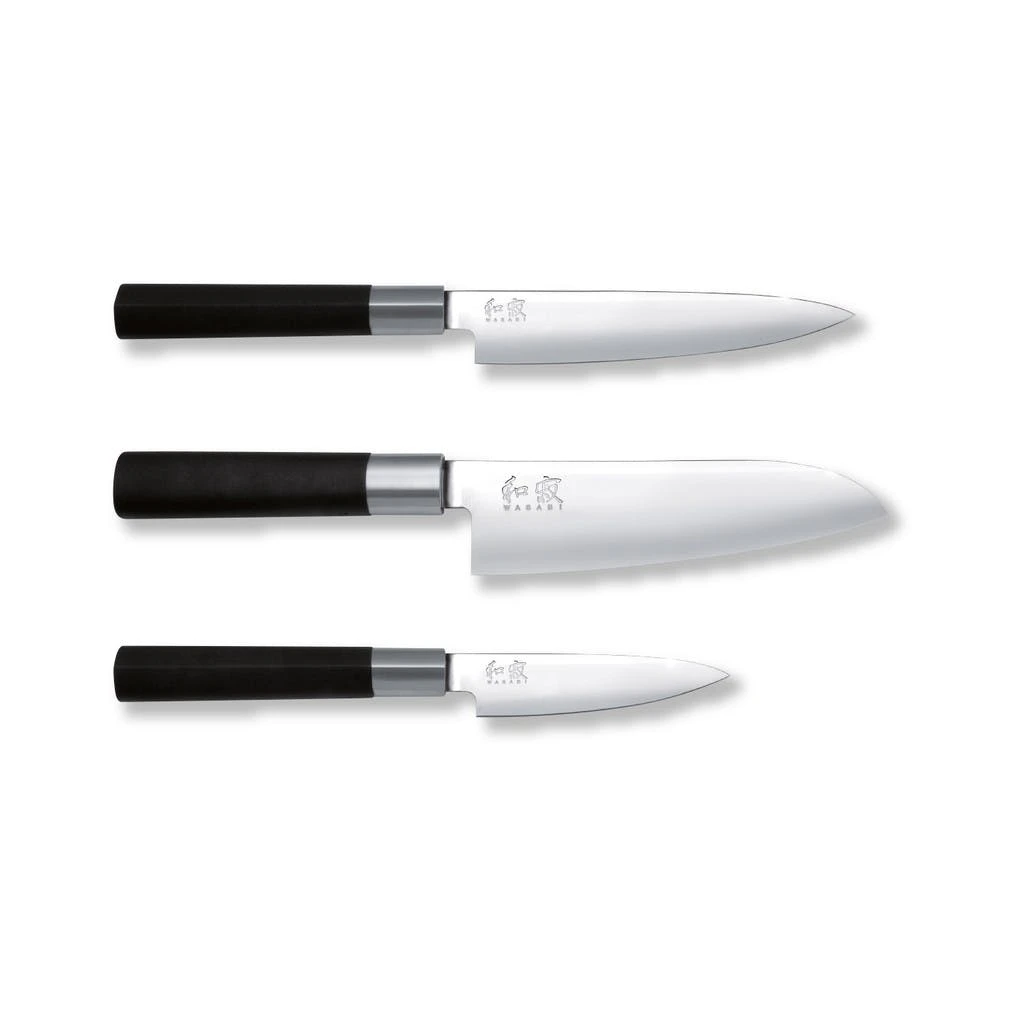 Das KAI Wasabi Black Kochmesserset mit Santoku und zwei Allzweckmessern (67-W13) besteht aus den folgenden scharfen Kochmessern: