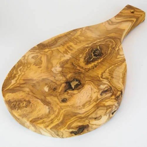Kräuterbrett mit Griffaus Olivenholz. Dieses kleine Brett zum Zerkleinern von Kräutern, Zwiebeln, Tomaten, Wurst und Käse, etc. ist ein kleiner Alleskönner. Das Holz nimmt auch bei täglicher Nutzung keinen Geruch an. Länge ca. 23 cm; Breite ca. 10 cm