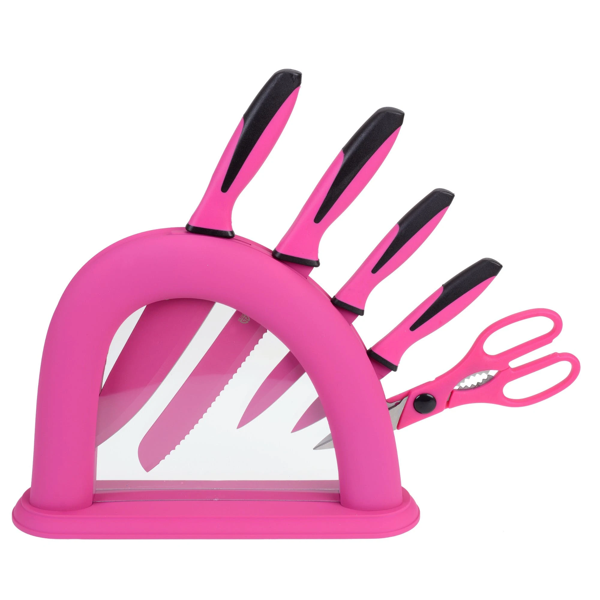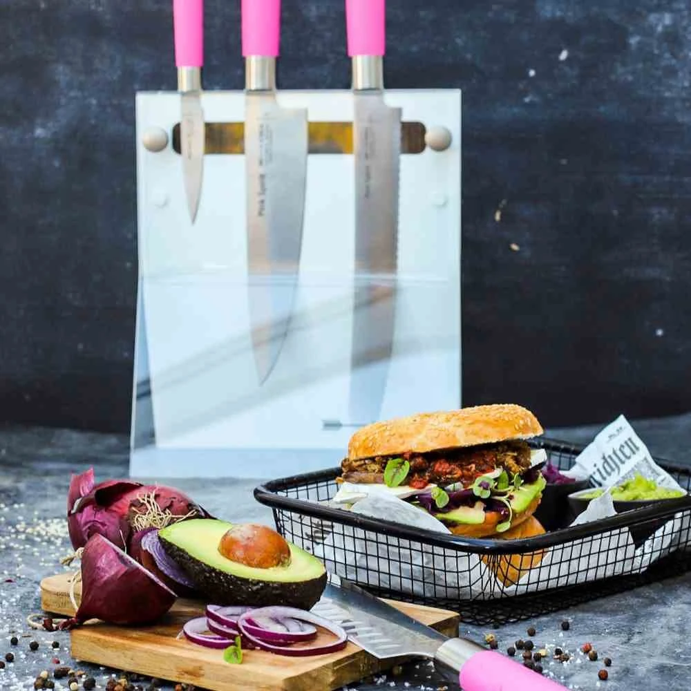 DICK Messerblock 4Knives “Pink Spirit” weiß Messerblock aus Acryl bestückt mit: – Kochmesser 21 cm – Santokumesser 18 cm – Brotmesser 26 cm – Officemesser 9 cm